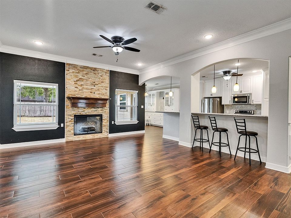 Fun patio areaBuilt in drawersBrand new garage doorIlluminated vaulted ceilingExpansive modern kitchenDeep jetted tubPrimary closet