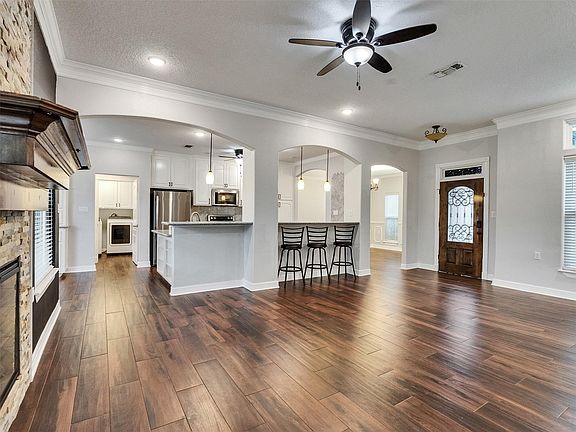 This Pristine home boasts so many CUSTOM TOUCHES!! Gorgeous layout, equipped with tons of built-in cabinets & storage space. Expansive modern kitchen opens to an entertaining Living area & fireplace. Kitchen has TONS of counter space & cabinets including a multi-rack pantry with floor-to-ceiling pull out shelves. Breakfast area has a built-in breakfast nook & eloquent glass cabinet coffee or wine bar. Primary Bedroom sits off by itself, opposite the other bedrooms and hosts an illuminated vaulted ceiling, a built-in office area, a double vanity primary bathroom with built in drawers, including the primary closet. The Primary bathroom holds a deep, jetted tub & larger shower. Exterior areas include a great back yard, storage shed, brand new garage door, additional 3rd driveway space, and fun patio area available for future additions. This home has so many CUSTOM FEATURES! Book today.