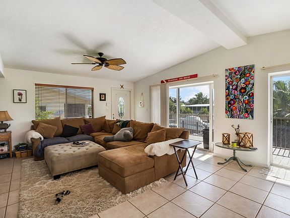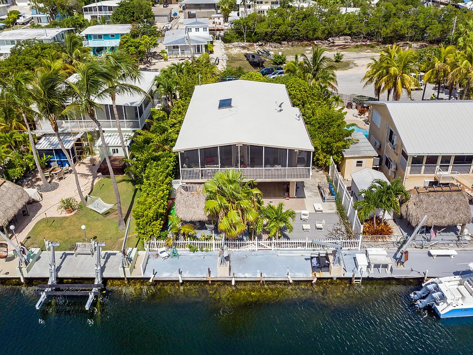 Beautiful and relaxing canal front home in desired Plantation Key Colony. This home is located on a private cul-de-sac. As you arrive at the property you are greeted by a manicured yard and privacy fence on three sides of home. The backyard has an amazing view of the canal with a Large Tiki Hut for shade, a sun deck for relaxing and a concrete boat dock with davits for boat storage. There is plenty of covered parking under the home. The property is a 2/2 up with downstairs bonus room that may be non-conforming. As you walk upstairs you are welcomed with two bedrooms and two bathrooms with an open concept living space. Sit in your large screen porch with views of the canal while enjoying your morning coffee or a refreshing drink. ALL BUYERS MUST BE ACCOMPANIED BY THEIR AGENT AT THE TIME OF SHOWING.