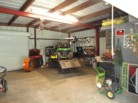 Wonderful 2 bedroom 1 bath Cottage has a brand new 2.5 ton A/C unit just installed with a Fabulous 1008 sq ft Metal Shop which includes a 10 Thousand Pound Lift and 1100 Pound Wench and air lines for Air Compressor. The building includes an Air conditioned Office, separate Storage Room, Work Benches and Cabinets, Bathroom, and 36x12 Covered Porch area in front + 24x12 back covered patio for shop, and 24x12 Lean To off of shop. There is plenty of room for additions: 24x15 Covered Carport and 32x26 Covered Carport that you could park 4 vehicles under. House needs a little updating.
