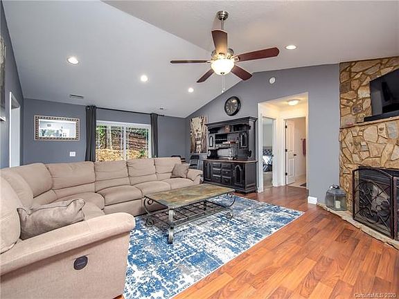 Private, wooded, end of street location in Fountain Trace. Beautiful, like new, single level home with split plan layout offers open living area with stone fireplace and vaulted ceiling. Walk out to stone patio from the living room and near kitchen to grill out. Newly tiled kitchen with stainless appliances. Master bedroom has private bathroom and large walk-in closet. In addition to second bedroom, bonus room can be used as an office, 3rd bedroom space, or hobby room. Plenty of room to spread out. Nice size laundry room between garage and kitchen. Enjoy living in this peaceful, walkable neighborhood, close to golf courses, downtown Hendersonville, and Dupont State Forest Park trails for hiking or mountain biking. Water is a community system, serviced by Aqua Services. This one won't last!