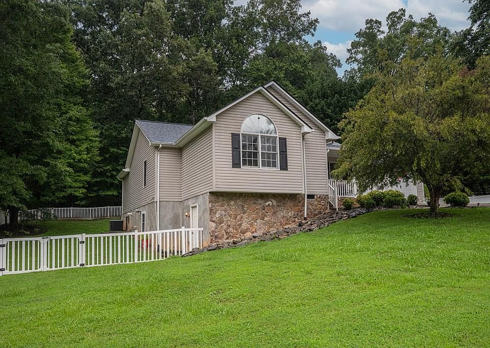Vinyl fenced-in backyardUpdated master bathroomOpen floorplan kitchenCeiling fansSpacious covered deckNatural gas lineVaulted ceiling