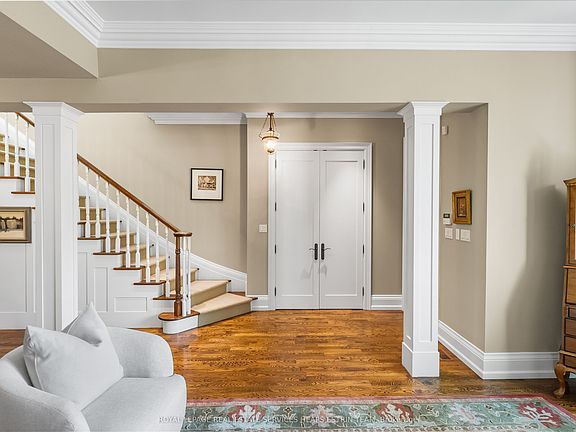 A rare blend of architectural substance and refined design, 114 Belsize is a newer custom-built home with nearly 30 feet of frontage on one of Davisville Villages most coveted streets. Surprisingly spacious at almost 4,000 total square feet, this residence combines elegance and scale in equal measure. Three bedrooms upstairs plus a spacious 4th bedroom with full bath on the lower level. With an elegant brick façade, copper detailing, and a solid oak front door, this residence makes a striking first impression and continues to impress throughout. Inside, 10-foot ceilings, wide-plank oak floors, and intricate millwork create a sophisticated yet welcoming atmosphere. The chef's kitchen is both functional and beautiful, featuring SubZero, Wolf, and Miele appliances, custom Scavolini cabinetry, and seamless flow to a sunlit family room with floor-to-ceiling windows and walkout to the landscaped garden. The formal living and dining rooms are ideal for entertaining, anchored by a dramatic double-sided fireplace clad in black flamed granite and framed with decorative columns and cove ceilings. Upstairs, the primary suite feels like a private retreat with 15-foot vaulted ceilings, a romantic brick balcony, double walk-in closets, and a spa-like ensuite with heated travertine, a glass-enclosed rain shower, and private water closet. Two additional bedrooms with generous closets and thoughtful detailing complete the second floor. The lower level features heated porcelain floors, a spacious rec room, fourth bedroom, full bath, and a walk-in wine or cold cellar. Outside, enjoy lush landscaping, Wiarton-style stone, irrigation, and a fully fenced backyard. An oversized two-car garage with an EV charger adds convenience and future-ready functionality. Just steps to Yonge, Mount Pleasant, top schools, the Beltline Trail, and Davisville Station, this is a home that delivers on every level.