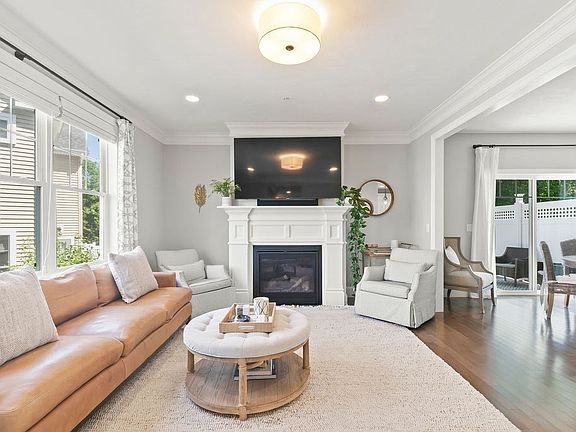 Welcome to 114 Brookview Rd, a turn-key townhouse in desirable Franklin, conveniently located near 495 & Forge Park commuter rail. Built just 5 yrs ago, this modern home combines elegance & comfort. The main level boasts 9' ceilings with an open concept, seamlessly connecting the living room, dining area, and gorgeous kitchen. Equipped with SS appliances, white cabinets, new quartz countertops and breakfast bar, the kitchen is perfect for meal prep. The living area includes a gas fireplace, creating a cozy ambiance, and the rich hardwood floors & crown molding add a touch of elegance. The upper level features 2 large bedrooms w/walk-in closets, 2 full baths, plus a versatile office area and a dedicated laundry room. The lower level includes a family room, additional bedroom, and unfinished storage space. Step outside to a composite deck overlooking a picturesque landscaped & wooded backyard, ideal for outdoor relaxing. Two-car garage is perfect for both parking & storage. Welcome home!