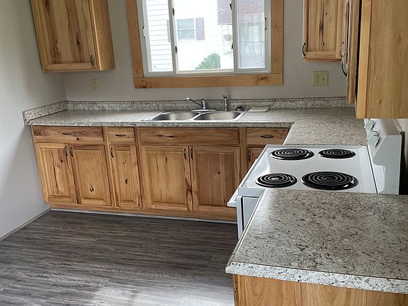 Newly remodeled, kitchen and bath, large master bedroom, laundry, hook up on first floor stove and refrigerator included. Wrap around front porch, large backyard with shed. Off street parking. No pets. Quiet neighborhood. Large attic for storage.