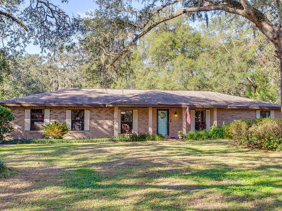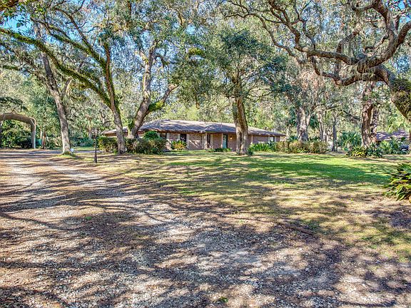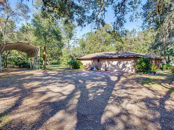 This home is tucked away in the established neighborhood of Timber Oaks, just minutes away from downtown Eustis. With no HOA, and just over an acre of land, this four bedroom, two bathroom split floor plan home has plenty of yard space for outdoor fun. Inside the home you will be welcomed to a cottage beach vibe and find new vinyl plank flooring throughout the kitchen, living room, and flex/dining room. Living room includes a fireplace and plenty of space for a sectional sofa. Three bedrooms are just off the living room with a newly updated bathroom. French doors lead out of the living room into the large Florida room, which provides space for entertaining, dining, and relaxing. The Florida room has wraparound windows for plenty of natural light and is under AC for comfort. Another set of French doors lead into the Master Suite, with a spacious en suite bathroom complete with a dual faucet vanity, spacious closet and shower. The kitchen provides a cozy space for both prep and dining. A third set of French doors leads from the kitchen into flex space. This is currently being used as an office, but can be converted to a formal dining room. The laundry room is just off the kitchen. Two car garage has side entry. Covered carport is great for RV or boat storage. Both the roof on the home and the Florida room were recently replaced.