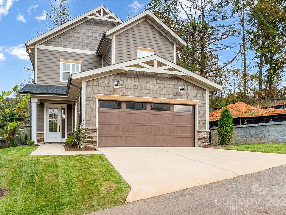 Introducing 114 Chapel Crossing lane, an exceptional new construction home built in close proximity to downtown Weaverville. This custom home is perfectly positioned to allow you to take in the convenient location and immerse yourself in the blend of comfort and elegance! We invite you to step inside to a warm and inviting living space where 10 foot ceilings, 8 foot doors and expansive windows bring in an abundance of natural light. This spacious main level offers an open concept living that seamlessly blends the kitchen, dining, and living areas into one. The Kitchen allows for ease of entertainment and offers desired finishings. The upper level, becomes a showcase in this 3 bedroom home design, featuring vaulted bedroom ceilings and craftsman trimmings. The primary bedroom on this level features a tray ceiling, a luxury ensuite and walk in closet. While this home and community offer serenity, be ready to have desired convenience being minutes from shopping, restaurants and entertainment. 114 Chapel Crossing is calling your name, be ready to be spoiled with its charm, views and unbeatable location. Now offering a stainless steel side by side fridge and blinds throughout the home!