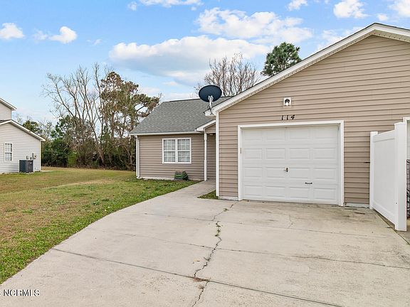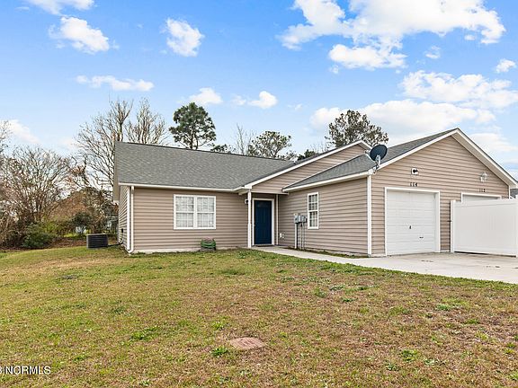 Welcome to 114 Charlton Road! This 2-bedroom, 2-bath open floor plan home features high ceilings, LVP flooring, and a spacious living area. The extremely functional kitchen offers great counter and cabinet space, an eat-in nook, and walkthrough access to the formal dining room. Both bedrooms feature double closets and en suite bathrooms. Located moments from shopping, dining, entertainment, and area beaches and just a short drive to Camp Lejeune's Piney Green gate. Schedule your showing today!