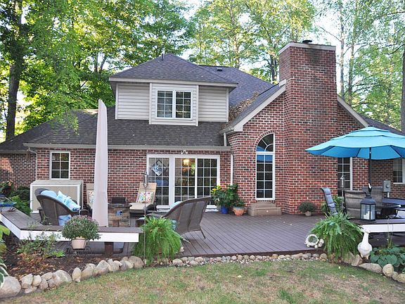 Welcome home to this beautiful residence tucked away on a quiet street surrounded by mature shade trees, professional landscaping, and ultimate privacy with no neighbors able to build behind you. The inviting covered front porch sets the tone for this well-maintained home featuring 2,793 sq ft of living space and a 3-car heated garage. Step inside to a stunning living room highlighted by a floor-to-ceiling brick gas-log fireplace flanked by accent windows, creating a warm and welcoming atmosphere. The 22x17 kitchen and dining combo is perfect for gatherings, offering an abundance of oak custom cabinetry, a center island, and stainless steel appliances that remain with the home. The main-level primary suite is a peaceful retreat, complete with a cozy window seat and an ensuite complete with a tiled shower, jetted garden tub, and a spacious walk-in closet. A den/office with a large bay window overlooks the beautifully landscaped front yard and covered porch—ideal for those who work from home or want a quiet reading space. The laundry room offers convenience with a wash sink and space for an additional refrigerator or freezer (note: refrigerator pictured will not remain). Upstairs, a bright loft overlooks the living room and offers additional space for relaxation or hobbies, while two generously sized bedrooms share a full bath. The daylight basement is designed for entertaining, featuring a 30x14 rec room with a second fireplace, built-in bar seating, and a pool table that is negotiable. Step outside to enjoy the professionally installed composite deck—a perfect spot for entertaining or relaxing in the peaceful backyard. With thoughtful details throughout and a roof that’s only five years old, this home truly combines comfort, quality, and timeless style.