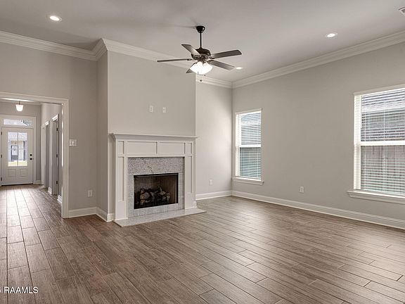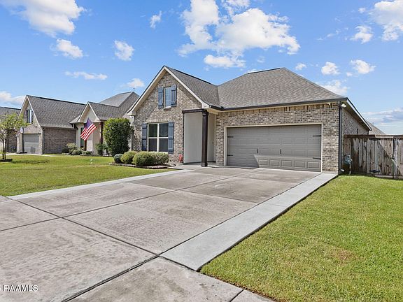 Welcome to 114 Chloe St, located in the highly desirable Paige Place subdivision in Broussard! This beautifully maintained 4-bedroom, 2-bath home offers a rare triple split floor plan, perfect for privacy and flexibility--ideal for guests, a home office, or multi-generational living. Step inside and be wowed by the spacious open-concept layout featuring a gas fireplace with gas logs, an oversized freestanding island with seating, and wood-look tile flooring throughout--no carpet anywhere! The kitchen and living areas flow seamlessly, making entertaining a breeze. The extra-large primary suite includes a double vanity, separate soaking tub and shower, and a massive walk-in closet you'll love. All window coverings stay, and high-mounted electrical outlets in each bedroom make TV installs quick and easy.Enjoy the outdoors? The sellers thought of everything! The extended 29x20 back patio features sunshades, creating a comfortable, shaded space for evening relaxation or weekend BBQs. The home also features a radiant barrier for energy efficiency and a tankless water heater--you'll never run out of hot water. Other amenities include: Fully fenced yard, Gutters installed, Security cameras, Neighborhood playground with shaded walking paths and beautiful landscaping. Located for a convenient commute to Lafayette, New Iberia, and everywhere in between, this home offers comfort, style, and unbeatable value in a one-of-a-kind community. Don't miss your chance--schedule your showing today before it's gone!