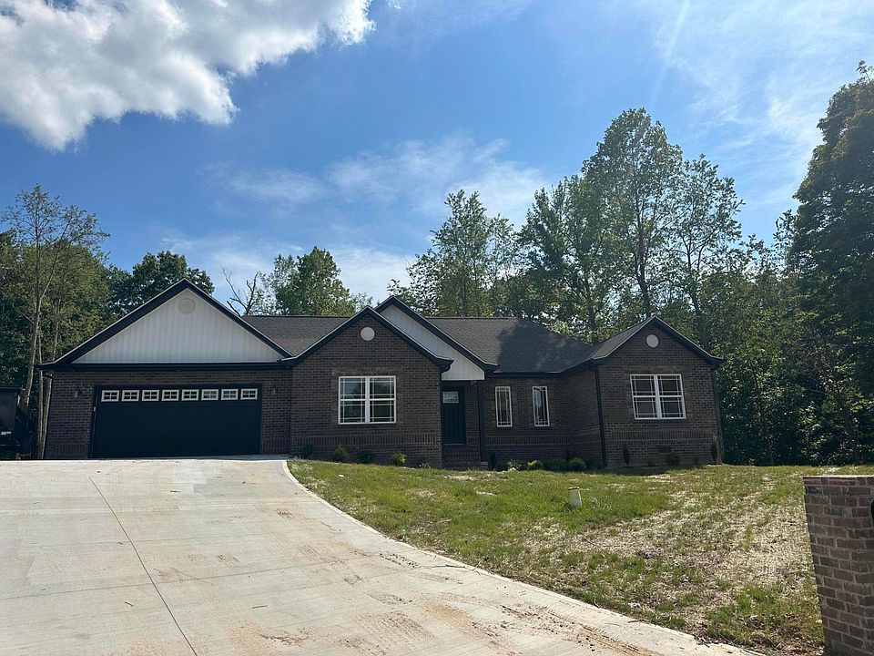 This new construction is nestled under trees on a 1.1 ACRE lot in cul-de-sac. What could be better? It has all the features of our bigger homes and is one of my favorite lots with so much privacy. It features our standard granite countertops in the kitchen and bathrooms with matching floor tiles of clean white and shades of gray. Bedrooms are the split plan, and the center of the home is all open with a great room, kitchen with large bar and formal eating. 2 car garage and spacious driveway and plenty of room to build another garage.