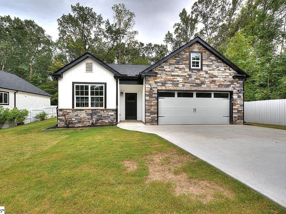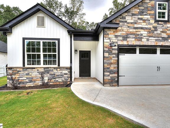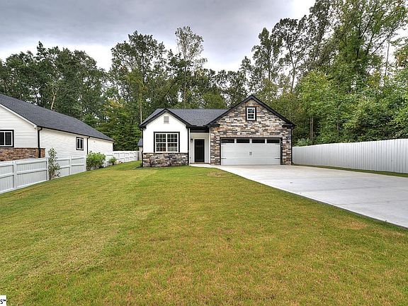 Welcome to 114 Cumbahee Trail – a brand-new Craftsman ranch home with no HOA and move-in ready. This single-level home features 3 bedrooms, 2 bathrooms, and over 1,400 sq. ft. of well-planned living space. The open layout connects the living room, dining area, and kitchen for a practical flow that works. The kitchen is equipped with quartz countertops, stainless steel appliances, and durable white cabinetry. Luxury plank vinyl flooring runs throughout the home, combining style with easy maintenance. The primary suite includes a walk-in closet and a full bath, while two additional bedrooms share a hall bath with a quartz vanity and tub/shower combination. Step outside to enjoy a covered patio with stone flooring, overlooking a tree-lined, fenced backyard that provides both privacy and convenience for children and pets. A storage shed adds functionality, and the extended driveway provides plenty of parking or flexibility for outdoor use. With energy-efficient systems, professional landscaping, and no HOA restrictions, this home has it all! Conveniently located just 15 minutes from Downtown Greenville, close to shopping, dining, and award-winning schools.