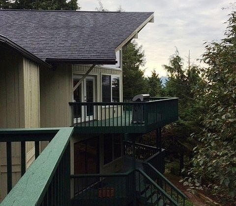 Come take a look at this beautiful and spacious home! Distinctive prow-front with vaulted ceilings and large window arrangements face a lightly filtered view of the ocean. Open floor plan on the main level consists of a living room, kitchen, dining room, laundry room, 3 BRs and one and a half baths. The lower level is your family room or a grand master suite that includes a bath and walk-in closet. A second floor loft makes a great office, playroom or guest room. Upgrades include: lighting fixtures, replacement windows, new roof, updated decks, fresh paint, brand new tile entry and a new Toyo stove. The kitchen and baths have also had recent updates. Multiple decks and ample parking - perfect for entertaining! In addition, this home comes with a 2BR/1BA apt. that has generated steady income for years! This one is a must see!