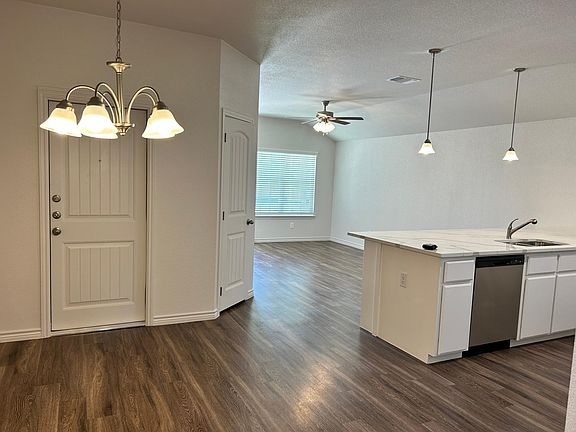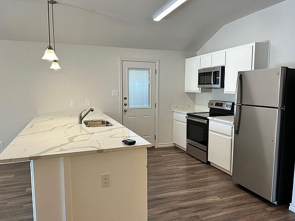 Vinyl wood color flooringLarge granite barDriveway spaceWasher dryer hookupsLarge primary bedroomOne car garageFenced backyard