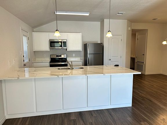 One year old unit, 3/2 duplex in East Temple. Minutes to downtown Temple, Baylor Scott and White, and I-35. Tons of dining, shopping, and recreation nearby. Vinyl wood color flooring throughout, no carpet. Open living/kitchen with large granite bar. Study nook in the hall. Washer dryer hookups. Large primary bedroom with walk in closet, double vanity, and soaking tub/shower combo. Fenced backyard. One car garage plus driveway space. Available early August.