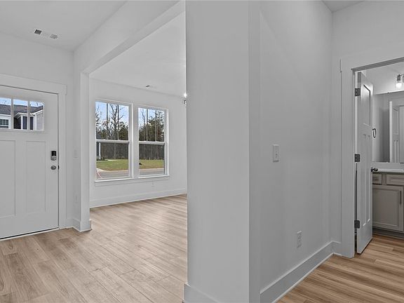 When you enter the Summit from your covered front porch, you will immediately notice how bright and open this home is. Adjacent to the spacious foyer is a dining room that could also be used as a home office. There is a full bath and laundry off the foyer as well. As you continue down the hall you come into your open kitchen and living area. Features of the kitchen include beautiful light grey cabinetry, white Quartz countertops, center island with sink, tile backsplash, under cabinet lighting and stainless steel appliances including a gas range and convection microwave. The living room with its 12 foot ceilings and large windows gives plenty of natural light. Off the living room is a covered back porch with a ceiling fan, a perfect place to spend those summer evenings. The Primary Suite on the main level has an expansive walk in closet, double sinks, and a beautiful tiled shower with a built in seat. Up the Oak staircase are 2 additional bedrooms, a full bath, and a huge bonus room for that extra living space you need. All our homes feature our Smart Home Technology Package including a video doorbell, keyless entry and touch screen hub. Our dedicated local warranty team is here for your needs after closing as well. Home has a single car garage along with a double driveway and your lawn maintenance is included! Builder to pay first year of HOA Dues. This home will is ready for you to make your own so come by today for your personal tour.