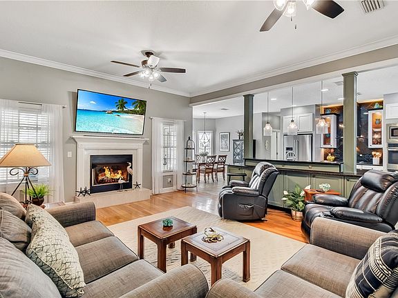 Welcome to this Beautiful, well maintained, 4 bedrrom/3 bath home featuring in-ground saltwater pool, located in the desirable Royal Oaks Subdivision. This property offers the perfect blend of comfort, style, and functionality- ideal for everyday living and entertaining. Step inside to find a spacious open floor plan featuring a cozy gas log fireplace, granite countertops, stainless steel appliances, a large center island, and a generous sized pantry. The luxurious primary suite is thoughtfully designed with two closets, dual vanities, a relaxing jetted tub, and a separate shower. Three guest bedrooms & two full guest bathrooms provide plenty of additional space. Enjoy your morning coffee or unwind in the evening on the tiled, screened in back porch overlooking your sparkling in-ground pool- your private back yard oasis. Community amentias include Deep-Water Marina with boat hoist & boat storage area! Recent updates include a new roof (2025) and many more thoughtful upgrades throughout. Don’t miss your chance to own this stunning home—schedule your private showing today!