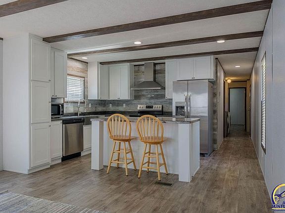 This 2022 build Mobile home sits on a corner lot, shaded with lots of trees. Inside the home you have an open living room and kitchen, with Farmhouse beams & backsplash, farmhouse sink and faucet. The dwelling has a list of upgrades done to this model including transom windows, 2x6 exterior walls, 2x4 interior walls, extra insulation, extra faucets and outlets, upgrades insulated locking skirting, upgraded A/C & Heat in flooring and much more! All of the appliances stay including refrigerator w/ice, dishwasher, disposal, microwave and used washer & dryer. The property had newly installed water lines, new sewer lines, under ground electric and internet. The permanent foundation has been approved by Osage county. You'll find a detached 2 car garage with matching smart siding painted to the color of the home. It has a concrete flooring and electric. The tax incentive Neighborhood Revitalization Program has been approved and begins for the 2024 tax year. This residence is practically new!