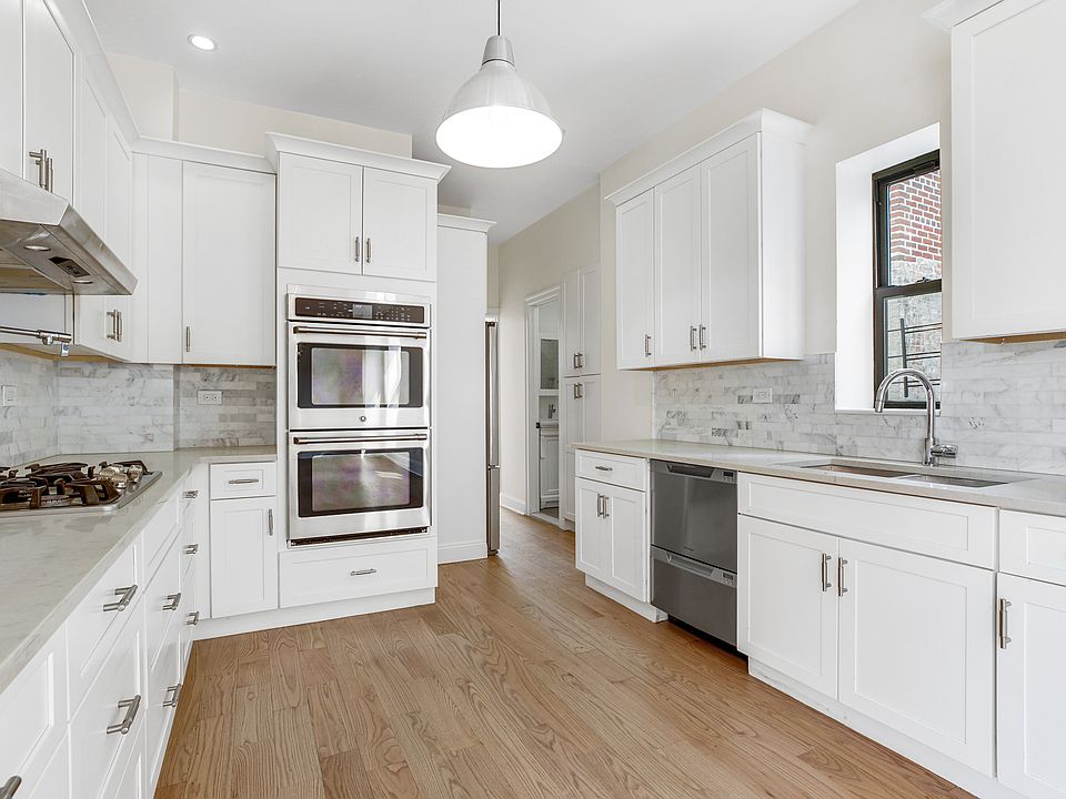 Oversized windowsTop-of-the-line appliancesWall of custom closetsStunning art deco-style fireplaceBrilliant sunlightSoaring ceilingsElegant en-suite bath