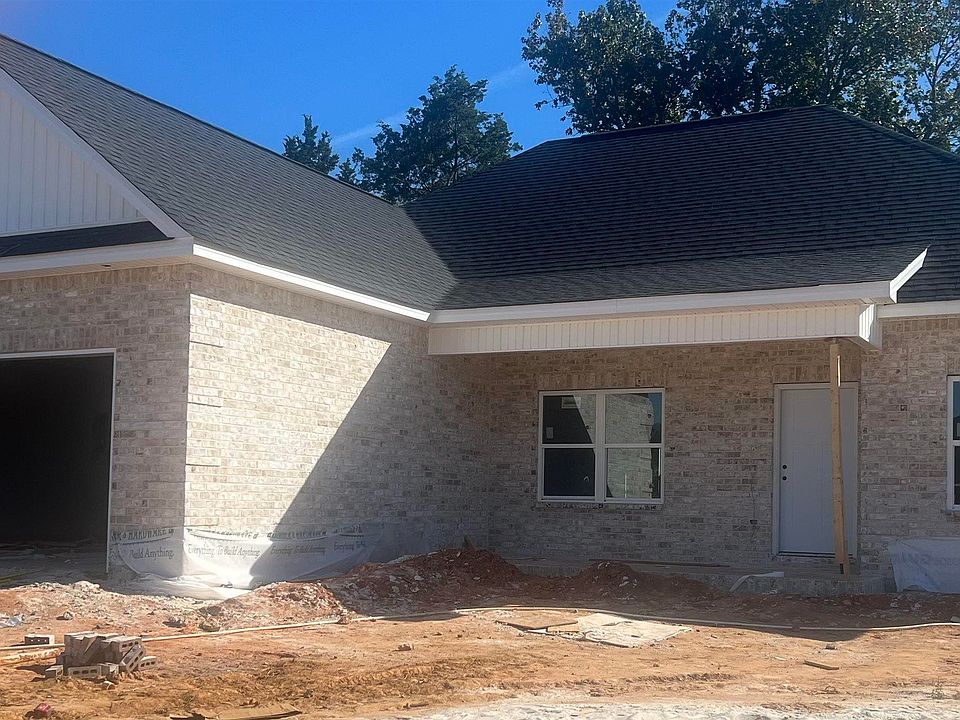 Stunning New Construction with Timeless Brick Front & Open Floor Plan Step into style and comfort with this beautifully designed new construction home featuring a classic brick front and an open-concept layout. Luxury vinyl plank (LVP) flooring flows throughout the home, combining durability with high-end style. The heart of the home is the spacious kitchen, with an abundance of cabinetry, sleek granite countertops, and an impressive 10-foot island with generous breakfast-bar seating—perfect for casual dining or entertaining. Stainless steel appliances, a walk-in pantry, and a cozy breakfast nook complete this culinary space. Entertain in style in the formal dining room, highlighted by elegant custom trim that adds a refined touch. The private master ensuite is a true retreat, featuring dual vanities, a relaxing garden tub, a custom-tiled walk-in shower, and an oversized walk-in closet. This split-bedroom floor plan ensures added privacy for family or guests. Additional features include a convenient drop zone and a spacious laundry room with ample cabinetry—designed with everyday living in mind.