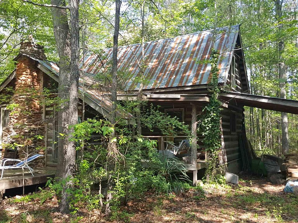 Rustic Log Cabin in a private setting. Would be perfect for a single person or retired couple. The property is being sold as is. The 10 acre lot is wooded. Large pole barn and old singlewide used for storage on the property.