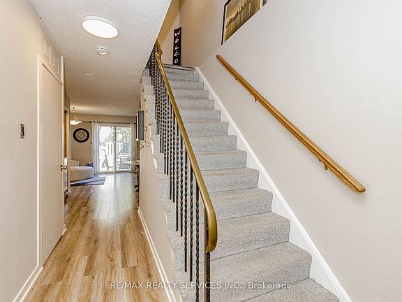 Located in a small enclave of townhomes, this end unit is ideal for first time buyers, young families or investors. Private fenced in backyard, finished basement with 4th bedroom and living space . Open concept kitchen overlooks dining area as well as living room. Nature lovers will appreciate the location, within steps from nature trails along Etobicoke Creek. Walking distance to schools, shopping and transit. Low monthly maintenance fees include water, grounds maintenance, Rogers cable, building insurance, (windows and roof replacement when needed.)