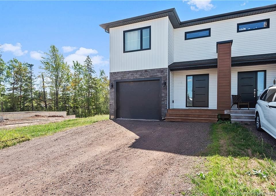 OPEN HOUSE Sunday ,October 12 From 2pm-4pm MODERN 2-STOREY SEMI // 2 MINI-SPLIT HEAT PUMPS // GARAGE // MOVE-IN READY Welcome to 114 Francfort in Moncton North’s desirable Evergreen Park! This modern semi offers an open-concept main floor with a bright kitchen, centre island, dining area with patio doors, and a cozy living room with electric fireplace. A mini-split provides year-round comfort, and a 2-piece bath completes the level. Upstairs features a spacious primary suite with walk-in closet and 5-piece ensuite, plus two additional bedrooms, a full bath, and convenient laundry. A second mini-split adds extra comfort. Enjoy the gorgeous backyard surrounded by mature trees—perfect for relaxing or entertaining! The unfinished basement offers room to grow, while the attached garage and stylish finishes make this home truly turn-key. Close to schools, shopping, and all amenities—this one is a must-see!