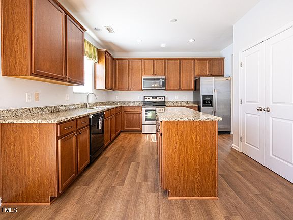 Gorgeous Single Family house with many upgrades. 4 bedrooms, 2 and half bathrooms, 2 car garages. Granite counter in kitchen with island & 42'' cabinets. Large side by side refrigerator. Great master bedroom with 2 walk-in closets. Brick front with full front porch. New roof, whole house new LVP floor and fresh paint, new dishwasher, new microwave, Community: Pool, tennis, and playground. Minutes to RTP, Duke, RDU, and shopping. Too good to be true!! Come see it before it's gone!!