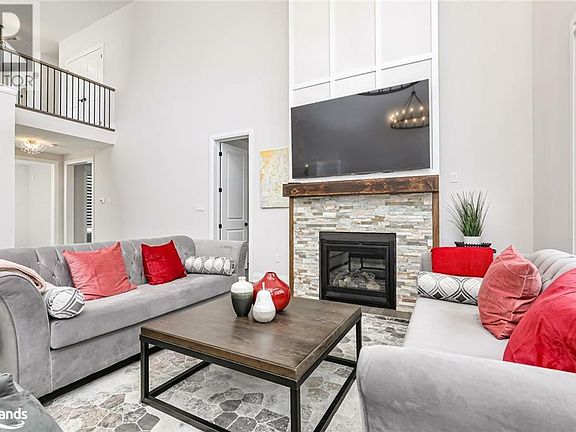 SKI SEASON, fully furnished rental. This immaculate home is ideally located in the prestigious community of Bayside. This 6 bedroom, 4.5 bathroom estate home is minutes away from Georgian Peaks Ski Club. Ideal for outdoor enthusiasts and nature lovers. The property is surrounded by natural beauty with views of green space. With tall windows, vaulted ceilings and plenty of open living space - you'll feel right at home. Sit back, relax and enjoy Après-ski beverages in the living room as the gas fireplace keeps you warm. The kitchen area is absolutely stunning with quartz countertops, a gas stove and modern appliances. The laundry is conveniently located on main floor, along with the primary bedroom and another guest bedroom. The primary has a luxurious soaker tub - great for resting those muscles after a long day at the slopes. The second bathroom on the main floor contains a walk in shower and fine finishing's. The upper floor has a spacious loft area in addition to two more bedrooms and one full bathroom! The fully finished basement is perfect for entertaining with a fireplace, serving nook area with sink and bar fridge, theatre room and pool table. The lower floor also has two spacious bedrooms, a powder room and a full bathroom with shower. Find a sanctuary of your very own at 114 Goldie Court! Winter occupancy dates are flexible. This rental comes fully furnished. Also available for fall season at a discounted rate. (id:41440)