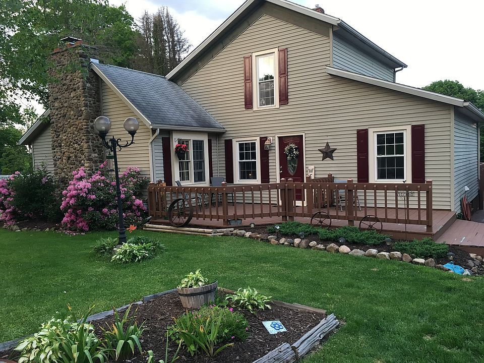 Charming 2 story home on extra large lot in quiet neighborhood! You will find everything you have been looking for in this home! Oversized living room with cathedral ceiling, stunning floor to ceiling wood- burning fireplace, 1st floor master with sliding glass doors to rear covered deck, newly remodeled eat-in kitchen with stainless appliance package and stone backsplash. Completing this home is another large deck on the front of the home with two car detached garage, paved driveway, and additional covered parking!