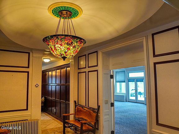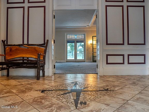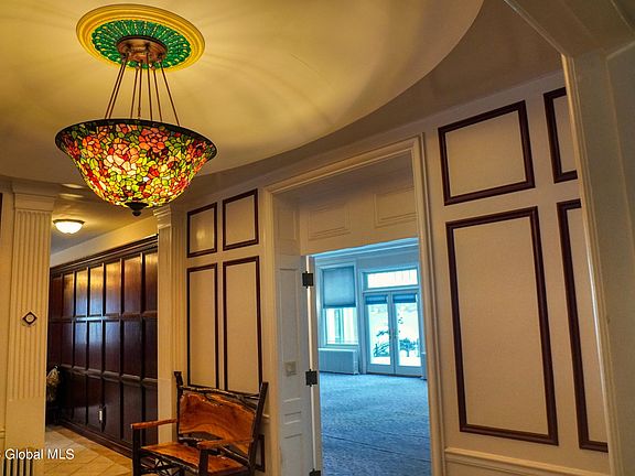A one-of-a-kind Lake George waterfront compound with a spectacular mansion, guest cottage and 33 income-generating boat slips is being offered for sale. Known as the ''Green Harbour Mansion,'' the 3.3-acre property occupies the tip of Cooper Point on Lake George (1,585 feet of lakefront) and was built in 1913 for Frederick F. Peabody. The property is anchored by the 14-bedroom, seven-bathroom, three-story mansion. The basement space of the mansion has been converted into two separate two-bedroom, one-bathroom seasonal rental units. There is also a four-bedroom, two-bathroom waterfront cottage. The property's landscaped grounds include a rock waterfall, a rope swing and a large gathering area on the point that provides panoramic views of Lake George.
