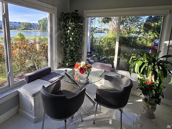 Beautifully Fully remodeled Corner unit Waterfront 1st floor Unit in the highly sought-after Greenbrier building. Offers privacy, natural light, and upgrades throughout. Private upfront parking directly in front of unit. Featuring high-end Ductless range and hood All hurricane Impact Windows Zebra Blinds 32x32 Glossy Tile Floors 6 inch Baseboards, Custom Paint. The kitchen boasts of custom cabinets, new appliances, over-sized island, and large deep dual sink Stunning bathrooms and floating Vanities and Tiled Showers LED Recessed hi-hat lighting smooth coat squared Finished ceiling Custom closets Ceiling fans in bedrooms and wall-mounted TV's New A/C 2022 Electrical Box Relax in the fully enclosed Lanai Fully Furnished! Also watch video enclosed for all the amenities CV has to offer.