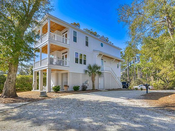 Welcome to 114 Half Shell Court. This spectacular home is located in the desirable Marshland Park Community, a 36 home creek front neighborhood nestled in a grove of oak trees. This versatile, raised beach house has many upgrades. On the ground floor is a garage with a large workshop or storage area. A ground floor elevator awaits and services all 3 floors. The front door enters into a quaint family room with shiplap walls and a fireplace. The family room flows into a chef's kitchen and dining area with lots of natural light. Step out on one of three porches and soak up the marsh breezes with partial view of the creek and sounds of the ocean. A bedroom with a full bath completes the first floor. Upstairs is a loft area that could serve as an office or flex space. The large primary suite is located on the creek side of the house with its own private porch. A second bedroom with a full bath completes the second floor. The front of the house overlooks a common area shaded with trees. Walk a few feet to a common area walking path for a breathtaking 180 degree view of the creek, wildlife, bald eagles, boaters and fishermen. You can even see the North end of Pawleys Island beach. Come and take a look at this two year old, lovely home in a serene setting full of coastal charm. The ocean is only a mile away by road.