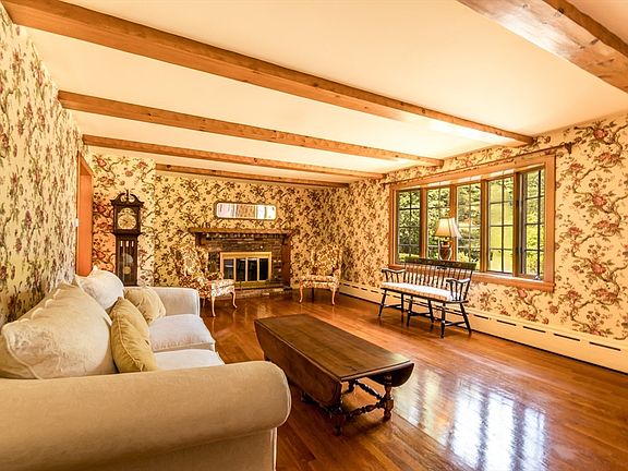 Enjoy the ease of single level living in this spacious & lovingly maintained one owner ranch, perfectly situated on a private, wooded lot of over 2 acres. This 3 bedroom, 2 bath home offers generously sized living spaces, beautiful hardwood floors and two fireplaces that add charm and warmth. A cathedral 3 season sunroom with skylights and a wall of sliders invites natural light and offers stunning views of the mature landscaping and outdoor fireplace, perfect for relaxing or entertaining. Convenient 1st floor laundry room and an attached one car garage, plus lots of parking thanks to a second private driveway, ideal for guests, an RV, or even a future ADU (accessory dwelling unit). A shed provides extra storage. Set back from the road for ultimate privacy, this property also offers easy access to the nearby YMCA for swimming and fitness. Whether you’re looking to downsize without compromise or simply want room to grow in a serene setting, this property is a rare find