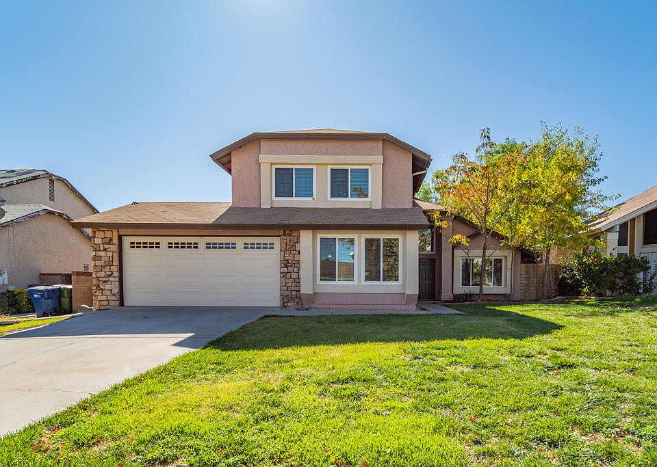 Fantastic Palmdale East Culdesac Home!! Landscaped Front Yard, New Interior Paint, New Carpet, Downstairs Bedroom.. these are just a few of the nice touches!! Step into this warm inviting home with a formal living room and dining area to your right that lead directly into a beautiful kitchen with granite counter tops and looks over a family room with an inviting fireplace. From there enter the backyard covered patio with enough room for family gatherings and surrounded by block walls. Up the stairs is a nice master bedroom with full bathroom, 3 more bedrooms and a shared hallway bathroom. This house will not disappoint!!