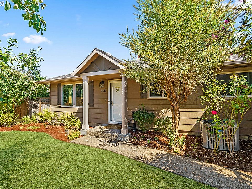 Updated, fresh paint inside and out, plus income potential - yes, please! This spacious and well-maintained property offers flexibility, updates, and multiple income possibilities. The main home features 3 bedrooms, 2 baths, and 1,681 sq. ft. of living space with thoughtful updates throughout. The primary suite includes an ensuite bath and a private exterior entrance, opening the door to potential short or long-term rental income or a private guest suite. You’ll love the remodeled kitchen, original oak hardwood floors in the bedrooms, and newer oak hardwood throughout the main living areas. A cozy wood-burning fireplace creates warmth, while the attached 4-car garage provides abundant space plus a heated office/workroom with its own window. A highlight of the property is the detached 800 sq. ft. ADU (1 bed/1 bath with full kitchen), which currently rents for $1,200/month including utilities. With its private entry, ample parking, and separation from the main home, it’s ideal as a short- or long-term rental, guest house, or extended family living. The property’s .27-acre lot is equally impressive, offering mature fruit trees, berry vines, a grape arbor, raised garden beds, an outdoor fire pit, and full fencing in both front and back for privacy and pets. There’s ample concrete RV parking or room for up to 8 vehicles. Recent updates include a new roof, A/C, electrical panel, canned lighting, and water heater. An irrigation well and underground sprinklers make yard care easy. This home is a rare find with strong income potential and room to live, work, and play. Don’t miss your chance to make it yours!