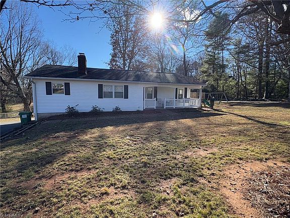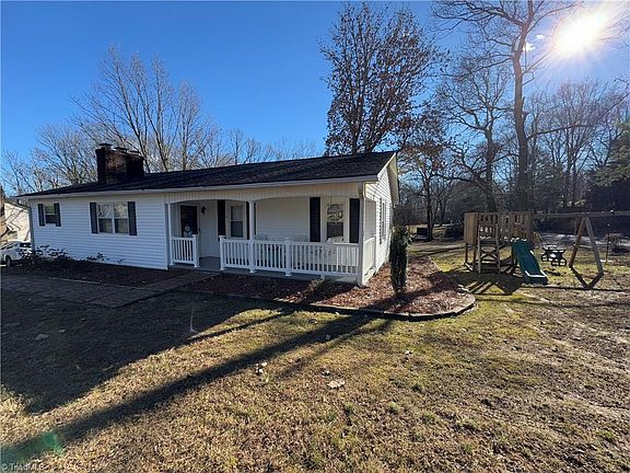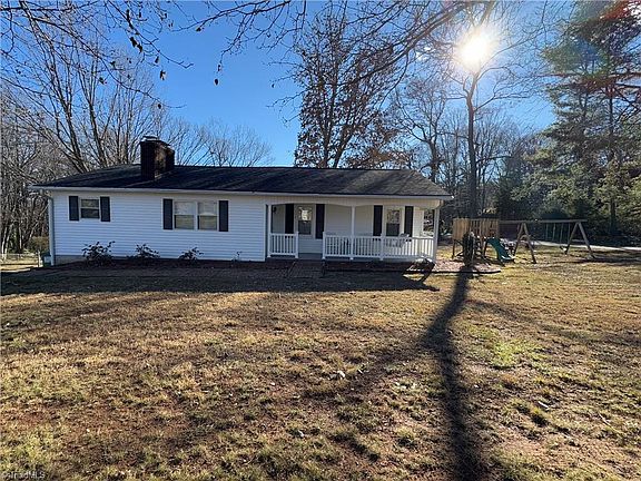 Absolutely charming home in King ready for it's new owners! You will be welcomed by the picturesque covered front porch. Inside the front door is a spacious living room centered around a fireplace with gas logs. Arched doorways remind you that this 1940's construction still has it's character. The dining room has built in shelves and is connected to the kitchen where you will find blue lower cabinets and white upper cabinets. Off the kitchen is a space that could function as a great mudroom and drop zone. The master bedroom is generously sized and has it's own connected full bathroom. Down the hallway you will find 2 more bedrooms with original wood floors, a laundry room conveniently located to all bedrooms, and a recently updated second full bathroom. There is a partial basement with a one car garage, ample storage space, and a fireplace with a wood-burning insert! Firepit overlooks the expansive backyard ready for kickball games or a homesteader's garden.