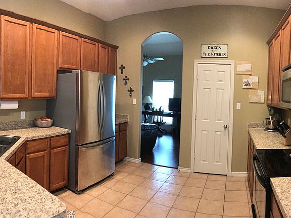 Welcome home! The cutest front porch makes for the perfect spot to enjoy your morning coffee and make a welcoming entrance for guests. The custom barrel entry opens to a flex space on the left and leads to the open concept living room featuring a stone fireplace. The spacious kitchen features 42 inch cabinets. The primary bedroom is nicely tucked in the back with a large ensuite bathroom and a large walk in closet with a pass through to toss your dirty laundry right into the laundry room. There is no carpet in this house! The covered back patio opens to a private backyard.