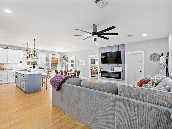 This stunning 3 bedroom, 2 bath home sits on a little over one acre and offers the perfect blend of country living and modern comfort. Built just two years ago, it features an open floor plan filled with natural light, bright white finishes, and spacious living areas ideal for entertaining or relaxing. The kitchen, dining, and living spaces flow seamlessly together, creating an inviting atmosphere that feels both fresh and timeless.