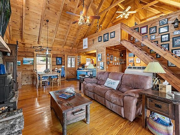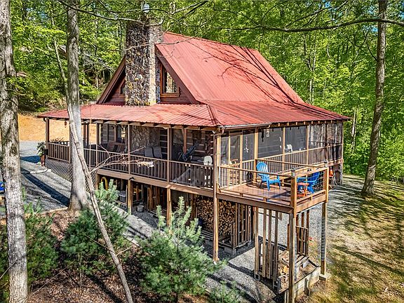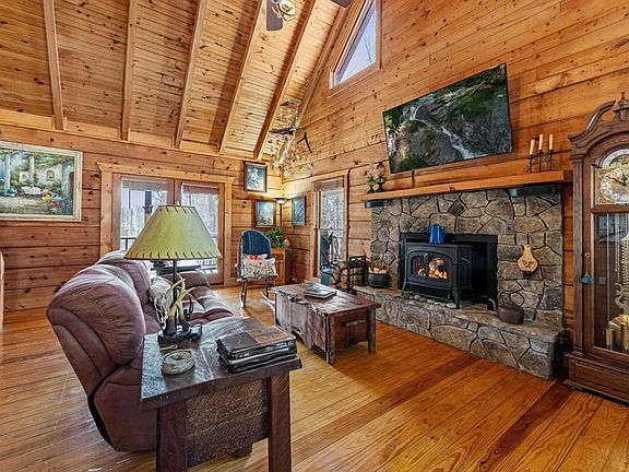 Mountain Charm Meets Modern Comfort in Buckhorn Estates! This beautifully maintained 2-bedroom, 2-bath true log home perfectly blends rustic warmth with thoughtful upgrades, ideal for full-time living or a peaceful mountain getaway between Blue Ridge and Ellijay. Step inside to an open-concept living area featuring a cozy wood-burning fireplace, gleaming granite countertops, and stylish finishes throughout. Recent interior improvements include a walk-in tiled shower, updated laundry area with shelving and worktop, new dishwasher and garbage disposal, reverse osmosis pure drinking water system, and additional lighting throughout for a bright, welcoming feel. The main level opens to a 28'8' screened porch, the perfect spot for morning coffee or evening relaxation, plus a newly updated sun deck with fresh decking and railing. Other perks include a whole-house Generac generator, large parking area for 5+ vehicles, gravel walkway surrounding the home, fenced raised-bed garden with water and power, and a custom stone fire pit for gatherings under the stars. A 16'12' powered outbuilding with covered porch and heavy-duty shelving provides ideal space for a workshop, studio, or extra storage, and there's a 30-amp RV hookup. Additional upgrades include leaf guards on gutters, insulated subfloors, and refinished, insulated windows and doors for improved energy efficiency. Buckhorn Estates offers paved roads, high speed internet, county owned river park with walking trail and an 8 acre lake for fishing & kayaking; Whitepath Golf Course, a county-maintained golf course is also in the community...Enjoy all of this with low HOA fees of only $225 per year. No short-term rentals permitted in this community (minimum 6-month lease), and full-time residents age 65+ are exempt from county school tax. This cabin combines charm, quality, and comfort—mountain living at its finest! Some furnishings included in the sale!