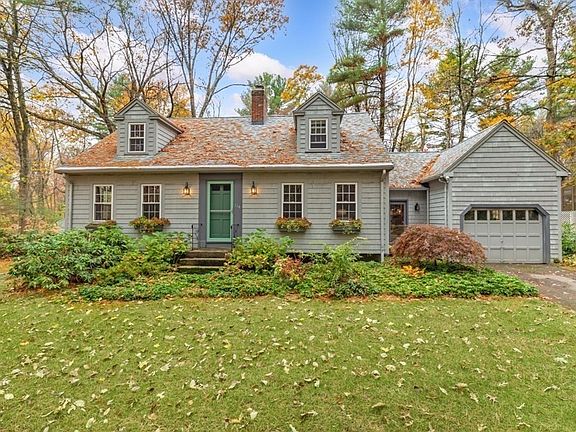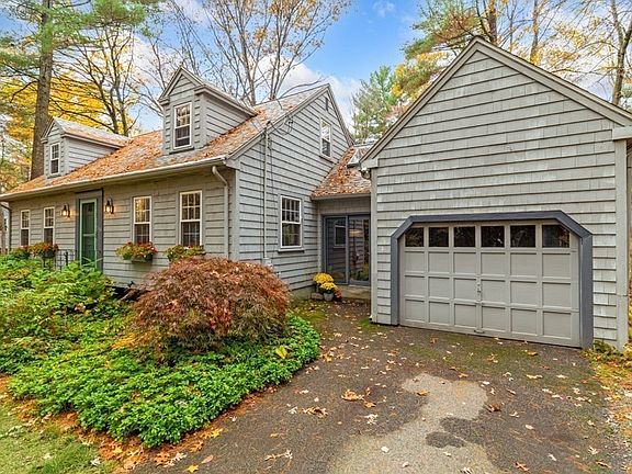 Lovely New England Cape nestled on a private wooded lot on quiet cul de sac road. Full dormer in back+2 window dormers in front. Stunning and spacious updated kitchen w/high end Shaker style cabinetry, quartz countertops, stainless appliances, long counter space w/stool seating+full and open dining space for kitchen table that offers so much natural light+beautiful window views of private back yard. Off the kitchen you can also step out to the oversized 3 season sunroom for sipping your morning coffee or entertaining family+guests. Fully renovated full bath complete w/first floor laundry. Living room w/brick hearth fireplace+honed wooden mantle. First floor office or den+formal dining room w/hardwood flooring. Upstairs you'll find the large main bedroom w/en suite renovated bath that also is accessed from the hallway. Two additional spacious bedrooms complete the second floor. Well maintained home: updated windows, baths, Roof(2012),Furnace(2014),Kitchen(2017),Brand New Septic(2022)!