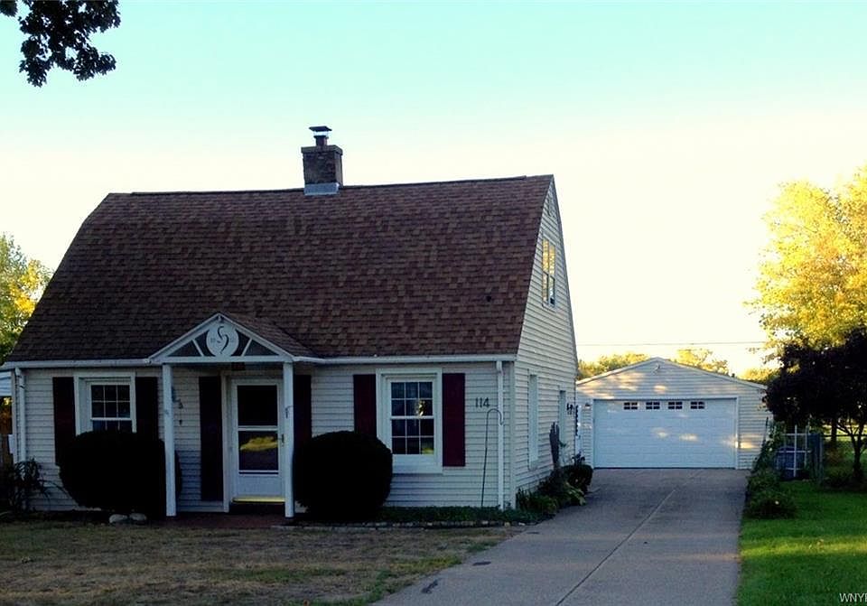 Vinyl-sided 3 bedroom Cape Cod with over 1400 sq ft of living space, a great location, on a quiet, tree-lined street within walking distance to shopping, eateries & thruway access! A large combination living & dining room, great for entertaining, two bedrooms upstairs & one down. In the back of the house, is an extremely spacious family room with wood burning fireplace, a half bath, & sliding glass doors leading to a large deck overlooking the backyard-no rear neighbors. All appliances stay including washer & dryer in the 1st floor laundry. Furnace/CA- 1993, HWT-2014, some newer windows, roof approx. 10 yrs old.