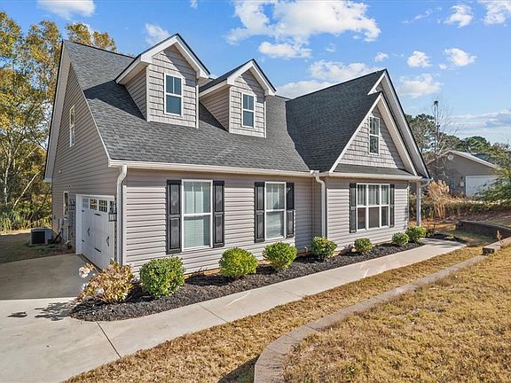 Welcome to this beautifully designed single-family, like-new home, nestled on a serene interior lot near Lake Hartwell, just 1/2 mile from a boat ramp. This two-story gem boasts four bedrooms, two and a half baths, has no HOA or restrictions, and a layout that combines comfort with stylish practicality. Step inside and you’ll find a spacious office right off the kitchen, perfect for working from home or managing household tasks in a quiet space. The kitchen flows seamlessly into an open great room and dining area, making it a perfect hub for gatherings and everyday living. The primary bedroom is conveniently located on the main level, featuring a generous walk-in closet, an en-suite bath with dual vanities, a garden tub, and a private water closet, which provides easy access to all of the home’s main amenities. Upstairs, there’s a versatile flex room—ideal for a playroom, media area, or extra entertaining space. Additionally, there are three spacious bedrooms, each with a generous closet for storage, and a centrally located full hall bath. Additional attic storage is conveniently located off the upstairs bedrooms. Outside, there is a covered porch leading to the backyard, which offers a lovely level area, perfect for outdoor activities, as well as an additional wooded section that backs up to a serene private farm, offering both tranquility and privacy. This home truly offers a blend of elegance and everyday convenience, conveniently located near Lake Hartwell for easy access to lakeside activities, as well as a short distance to Downtown Anderson or to access I-85. This modern, well-built home would be the perfect place to call your "Home Sweet Home"!