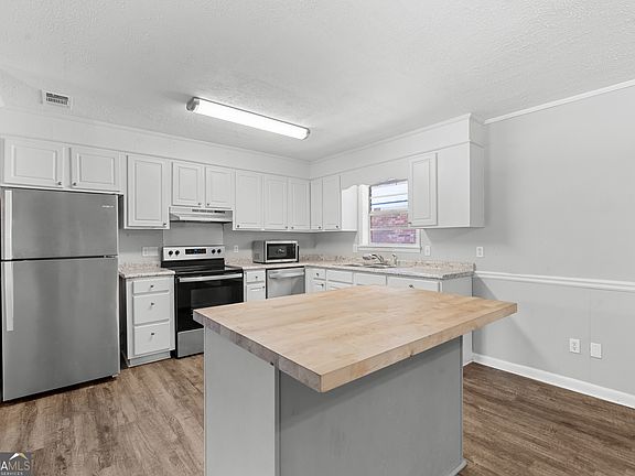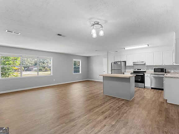 Fantastic value in this beautifully maintained home in Grove Lakes! Enjoy the peace and quiet of this established neighborhood while being just minutes from downtown Statesboro and conveniently close to Highway 80 providing quick access to Brooklet, Ellabell, and Savannah. Situated on a large lot with drive access from both Lincoln Street and Pretoria Rushing Road, this property offers excellent flexibility and privacy. Inside, you'll find an open-concept layout connecting the kitchen, dining, and living areas, plus a cozy family room featuring a charming brick fireplace. The home features updated flooring, modern lighting, stainless steel appliances, and a butcher block island all in great condition. Whether you're searching for a move-in ready family home or a solid investment opportunity, this property offers an unbeatable price per square foot in a prime location.