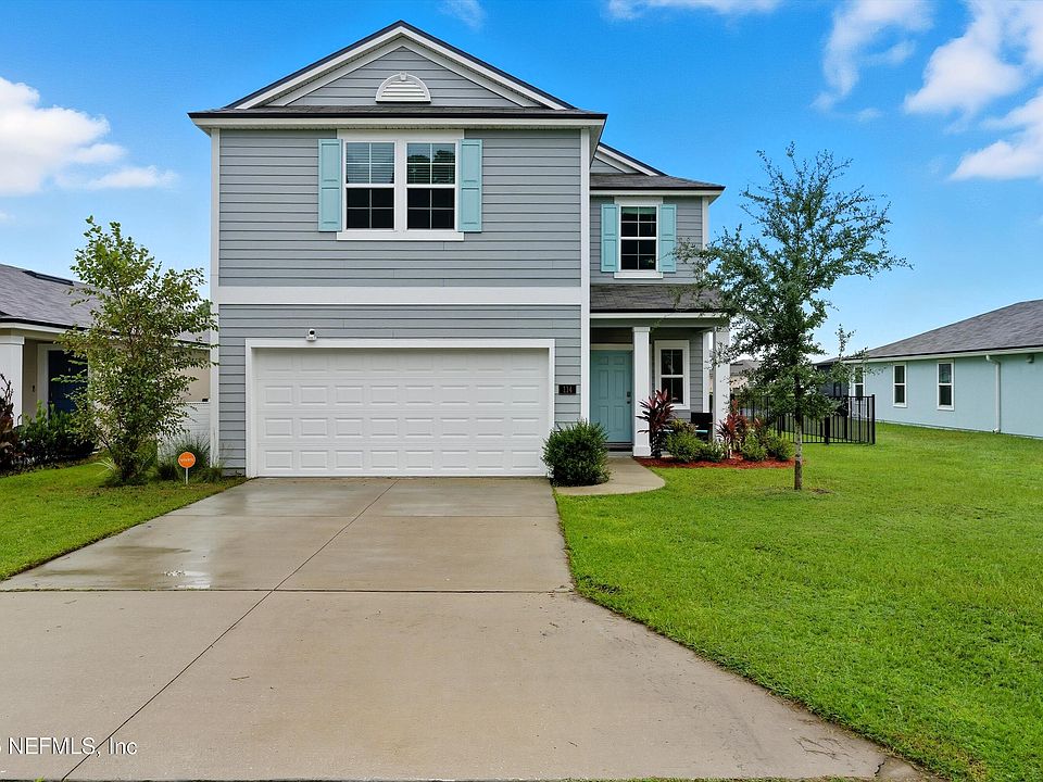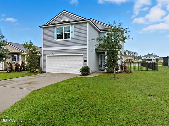 Welcome to this immaculate 4BR home in Entrada located in the hisotric district of St. Augustine! This 2-story DR Horton home built in 2022, features all of the modern finishes including an open floor plan with a kitchen island, pantry, and stainless steel appliances. There is a mudroom and a large indoor laundry room with shelving, perfect for family living. The Master features a large walk-in closet with dual sinks in the Master Bath along with a garden tub/shower combo. Enjoy time outdoors overlooking a sizable backyard with pond views or on the front porch spending time with the neighbors. Amenities include a pool, splash park, playground, club house, fitness center, & more. The home is close to a wide array of shopping & restaurants. Come & see today!