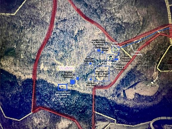 Secluded 84.5 Acres Self-Sustainable Infrastructure. One-of-a-kind property few miles off interstate yet away from the hustle. Video Tour: https://youtu.be/KaKUYXbP2Kk Former campground rezoned residential use could be commercial again. Free gas utility. UPDATES: New well Pump/Lines w. UV Light Filtration, Water Softening System. Tesla Battery Operated 48 Solar Panels. Siding/Insulation. Kitchen Island, Main Floor Bathrooms. New HVAC and much more. Timber-ready 5 yrs future income. Use as a private retreat, hobby farm, wedding venue, church group camp, getaway. Main House 5 bedrooms. Perfect family home, guest lodge, or hosting space. Large Entertainment Barn w. bar, kitchen, dining, sauna, pool, cabana, storage. Ideal for events & gatherings. 6 cabins (some w. AC/portable heat) provide lodging. Multiple RV sites w. water/electricity hookups. Chicken coop, goat pen, & multiple green meadows. Hike, explore & hunt abundant wildlife. Established trails & plenty of house seats throughout.