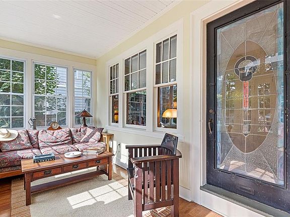 This often-admired Craftsman Bungalow is now available for the first time in a generation. Set on a lovely lot with mature plantings in a coveted Hope Village location. Step into the delightful sunroom and you will instantly feel at home. The rich wood details and divided light windows create the ideal spot to welcome the day. Continue into the living area and marvel at the quartersawn oak floors, beamed ceilings, corner fireplace and raised paneling all harking back to its 1915 roots. The bright, sunny eat in kitchen is open and spacious with tile counters and backsplash and crisp white cabinetry. The adjacent dining room has raised wood paneling and a window seat. The perfect setting for holiday entertaining. A half bath completes this first living level. Upstairs are three spacious bedrooms. The primary has a large walk-in closet and oversized windows. Two additional bedrooms, one with a charming window seat provide ample space for family or guests. A vintage black and white tile bath has been updated for modern living. Down to the finished lower level is a family room, craft room and a second full bath. Out to the show stopping back yard complete with a deck which overlooks the city garden. An outbuilding currently serves as a wood working shop and could easily be an artist studio, she shed or man cave. Just steps to the shops, restaurants and boutiques in Hope Village plus a short stroll to the farmer's market at Lippitt Park make this dreamy Bungalow is a must see.