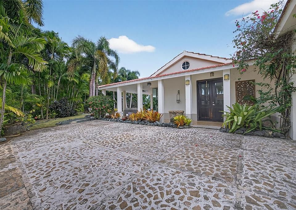 Sabanera Dorado – Camino de los Lotos #114. Well-appointed residence located on a private cul-de-sac within one of Dorado’s premier gated communities. The property offers 4 bedrooms, 4.5 bathrooms, 3,011 sq ft of living area, and a 1,070 sq mt lot. The home features a spacious living room, dining area, family room, a dedicated office, and a modern kitchen with S/S GE appliances, ample storage, and a secondary prep nook. Travertine marble flooring extends throughout the interior, terraces, and driveway. Climate control includes seven split A/C units and Big Ass Fans. The outdoor area includes a custom pool with jacuzzi with lake view, full exterior bathroom, concrete gazebo with a covered outdoor kitchen, and new AOG BBQ. The master suite provides direct access to the pool. Storage includes three garage closets and four exterior storage rooms. Property systems include a 20KW Perkins generator, water cistern, solar water heater, water softener, reverse osmosis system, and a 240V EV outlet. Community amenities feature TASIS Dorado, a clubhouse, La Pergola restaurant, fitness center, half-Olympic pool, tennis, pickleball, basketball, volleyball, soccer field, track, nature trails, and 24/7 security. HOA: $395/month.