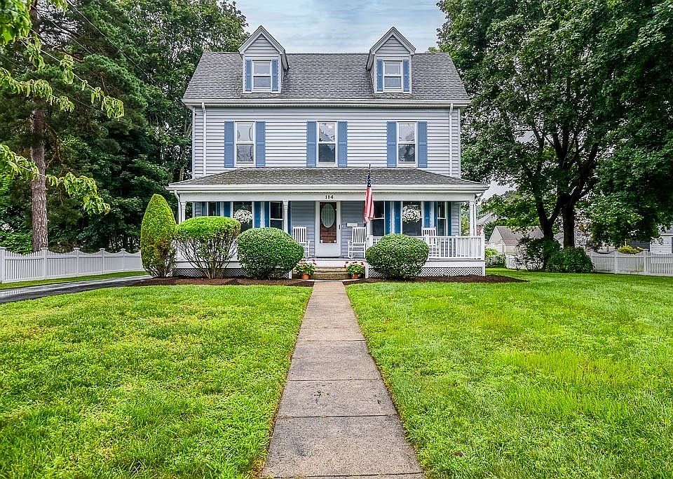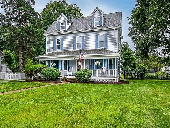 Pretty porch, pretty yard, pretty amazing! This often admired house on Madison Street is ready for new owners after 60 years of meticulous love and care. With a welcoming front walkway and porch, original woodwork and hardwood floors, and nicely sized rooms, this home has great potential for renovation and expansion. The main floor to this center entrance colonial offers a front hall, front to back living room with fireplace, formal dining room with built-in, eat in kitchen with gas cooking, half bath, and a covered back entry to the massive deck. The second floor offers 3 bedrooms and a full bath, and the finished third level offers two additional rooms for bedrooms, office or other uses. Plenty of storage in attic and basement. One car detached garage. Beautiful yard - for years, the envy of the neighbors! Updates include roof and furnace, both approximately 10 years, circuit breakers, windows and siding. The rest awaits your vision! OH Saturday and Sunday 12:30-2:30