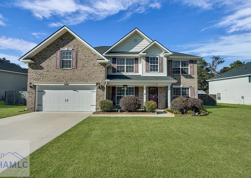 This beautiful home just minutes from Fort Stewart's main gate has NO HOA and is located in the Dunlevie Oaks neighborhood of Allenhurst, near Hinesville. The kitchen has stainless steel appliances, granite countertops, a large walk-in pantry and a separate office nook. There is a formal dining room as well as a flex room that could be an office, playroom or media room in addition to large open living room with gas FP. Upstairs has all 4 bedrooms, 2 full bathrooms and the laundry room! The primary suite features a separate sitting area, 2 walk-in closets, double vanities, large walk-in shower and a soaking tub. The property has full irrigation and a large fenced in backyard. No flood insurance is required! No HOA so you can bring your chickens, goats, boat, etc.! There is a termite bond with Yates Astro as well as a transferrable home warranty from American Home Shield! Just minutes from dining & shopping!